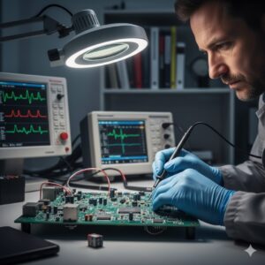 تعمیر جت پرینتر دومینو صنعتی فراتر از تعویض قطعه است. تکنسین باید بتواند با استفاده از ابزارهای تخصصی مانند اسیلوسکوپ، مشکل را در سطح میکرومکانیک هد یا مدارهای الکترونیکی برد اصلی ریشه‌یابی کند. این سطح از تخصص در تهران، تنها توسط شرکت‌هایی ارائه می‌شود که تمرکز خود را بر یک یا دو برند محدود کرده‌اند.